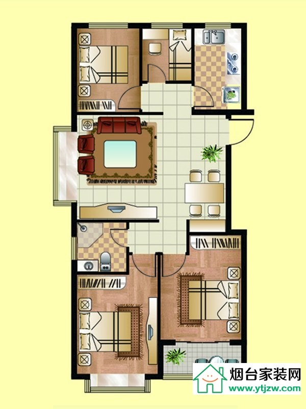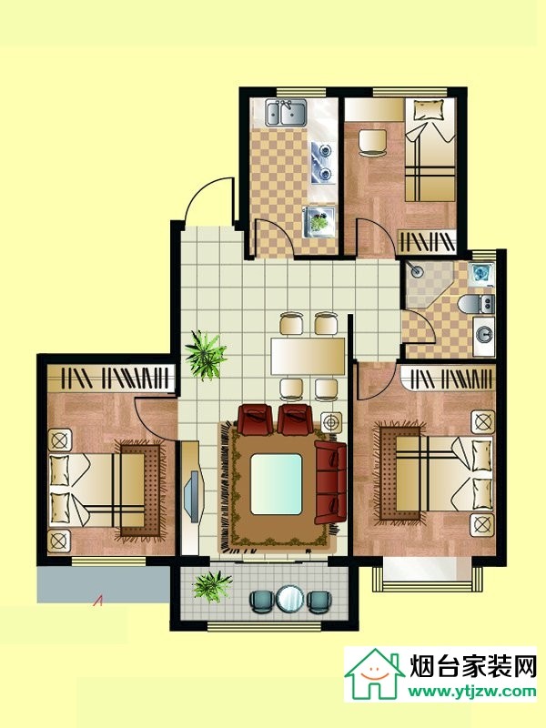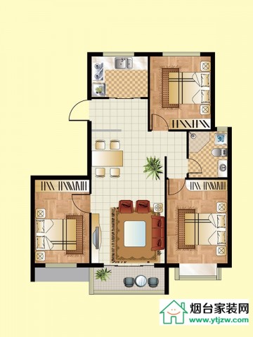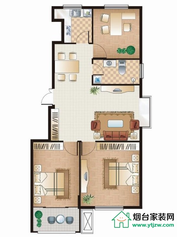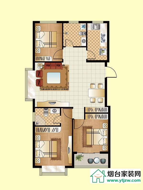 三期小高層B戶型, 3室2廳1衛(wèi)1廚, 建筑面積約92.78平米
