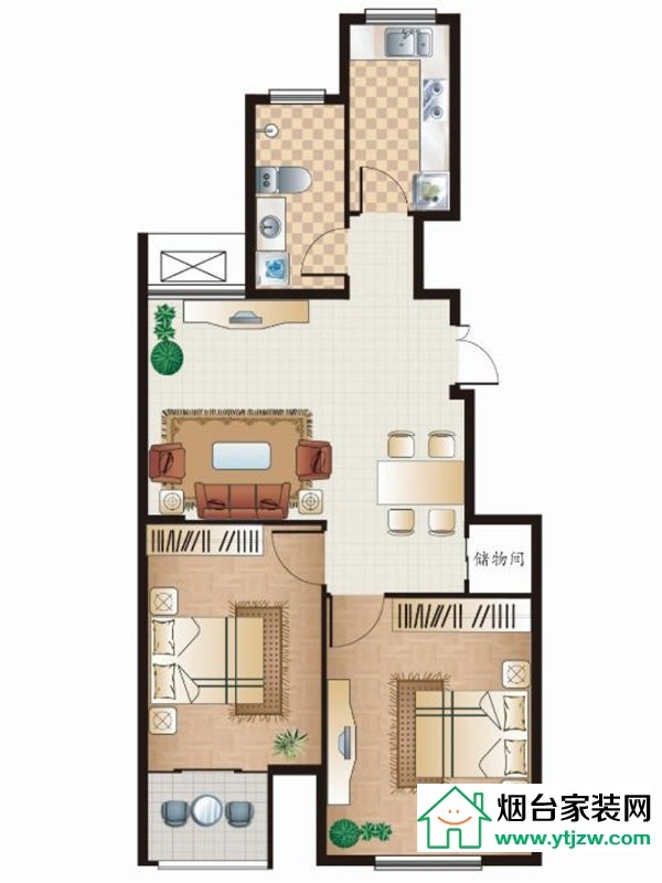 小高層B戶型, 2室2廳1衛(wèi), 建筑面積約81.00平米