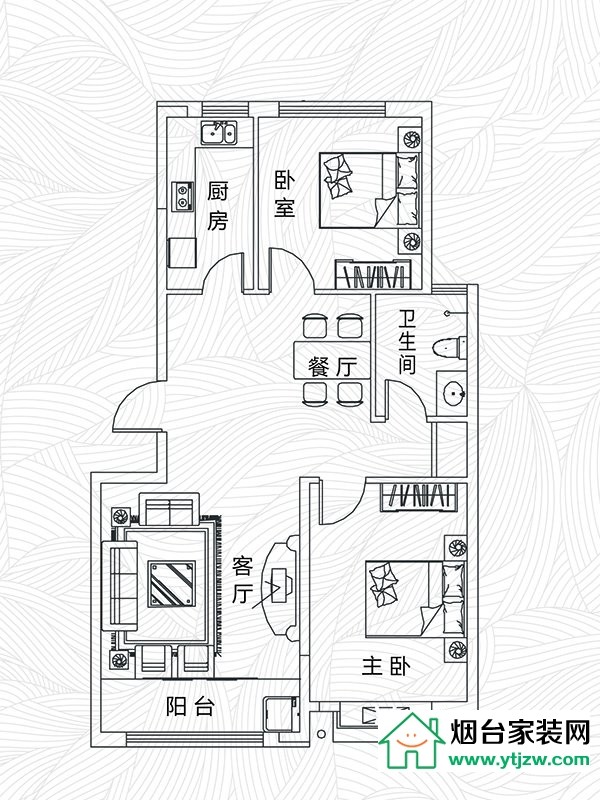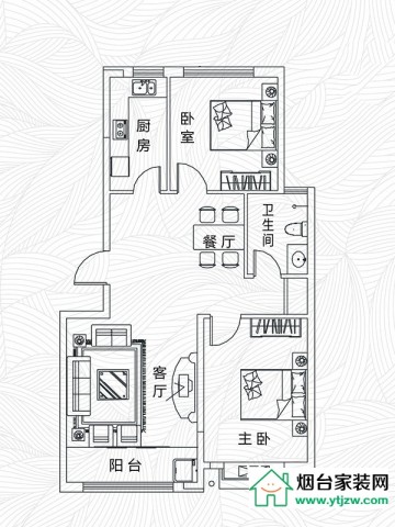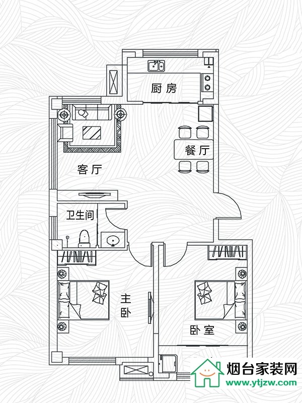 洋房F1戶型, 2室2廳1衛(wèi), 建筑面積約90.00平米