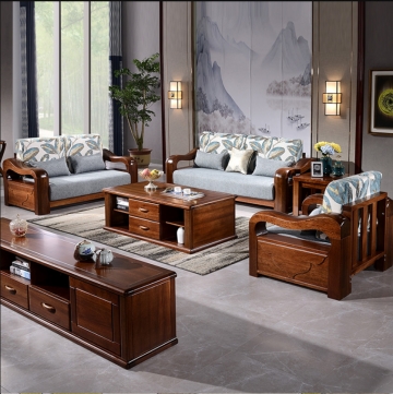 選新純實(shí)木新中式沙發(fā) 1+2+3+茶幾 25