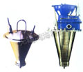 空氣經(jīng)過濾和加熱,進入干燥器頂部空氣分配器,熱空氣呈螺旋狀均勻地進入干燥室。料液經(jīng)塔體頂部的高速離心霧化器,(旋轉)噴霧成細微的霧狀液珠,與熱空氣并流接觸在短的時間內可干燥為成品。成品連續(xù)地由干燥塔底部和旋風分離器中輸出,廢氣由風機排空。